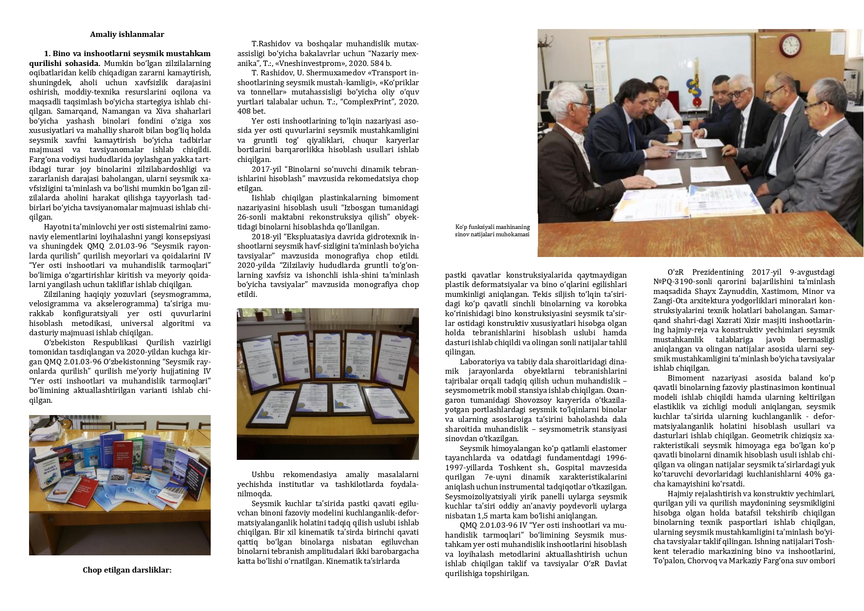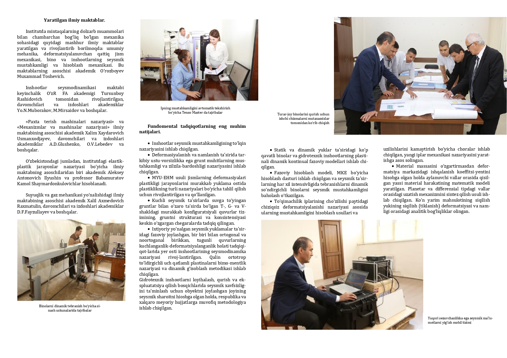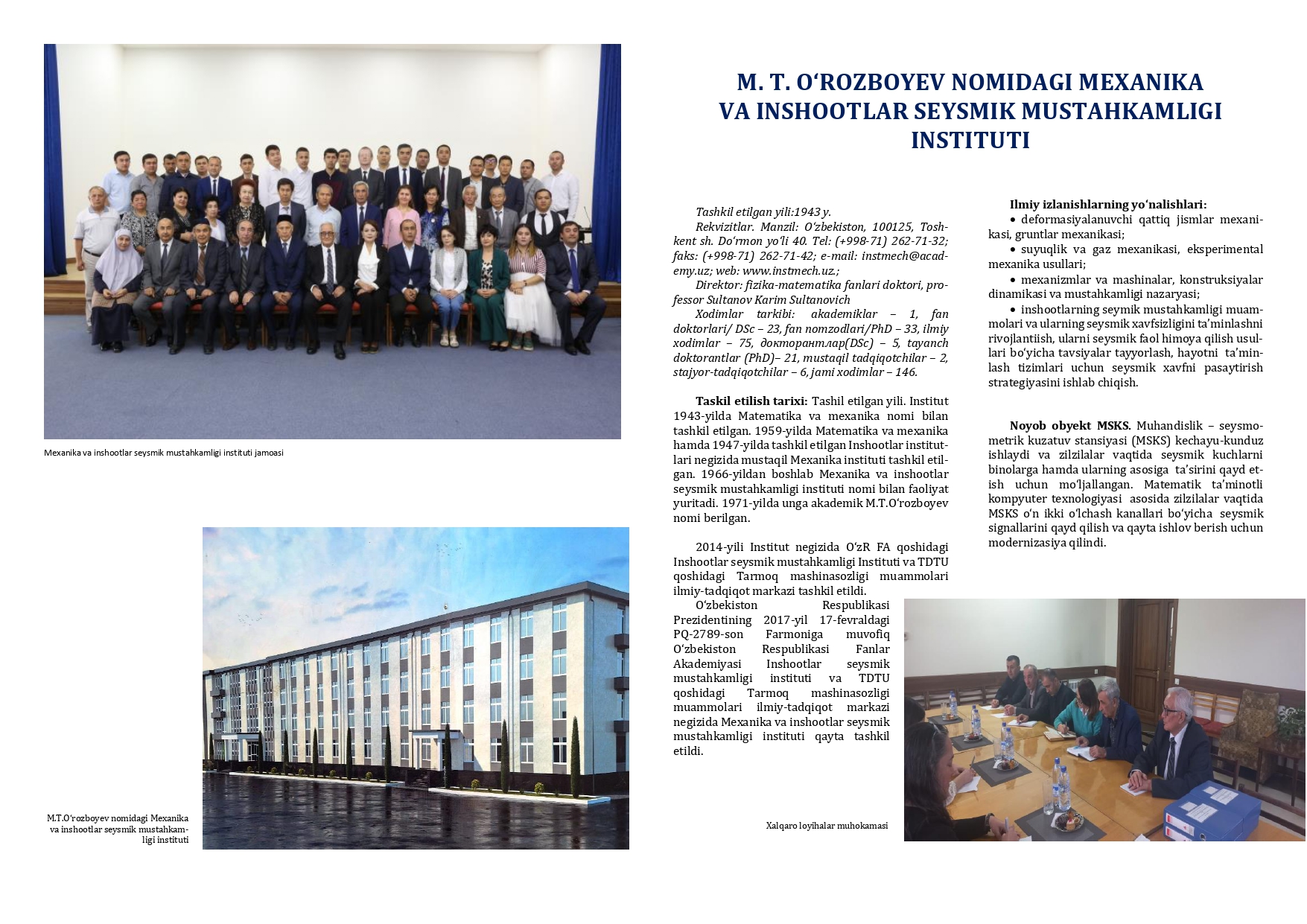 M. T. О‘ROZBOYEV NOMIDAGI MEXANIKA VA INSHOOTLAR SEYSMIK MUSTAHKAMLIGI INSTITUTI