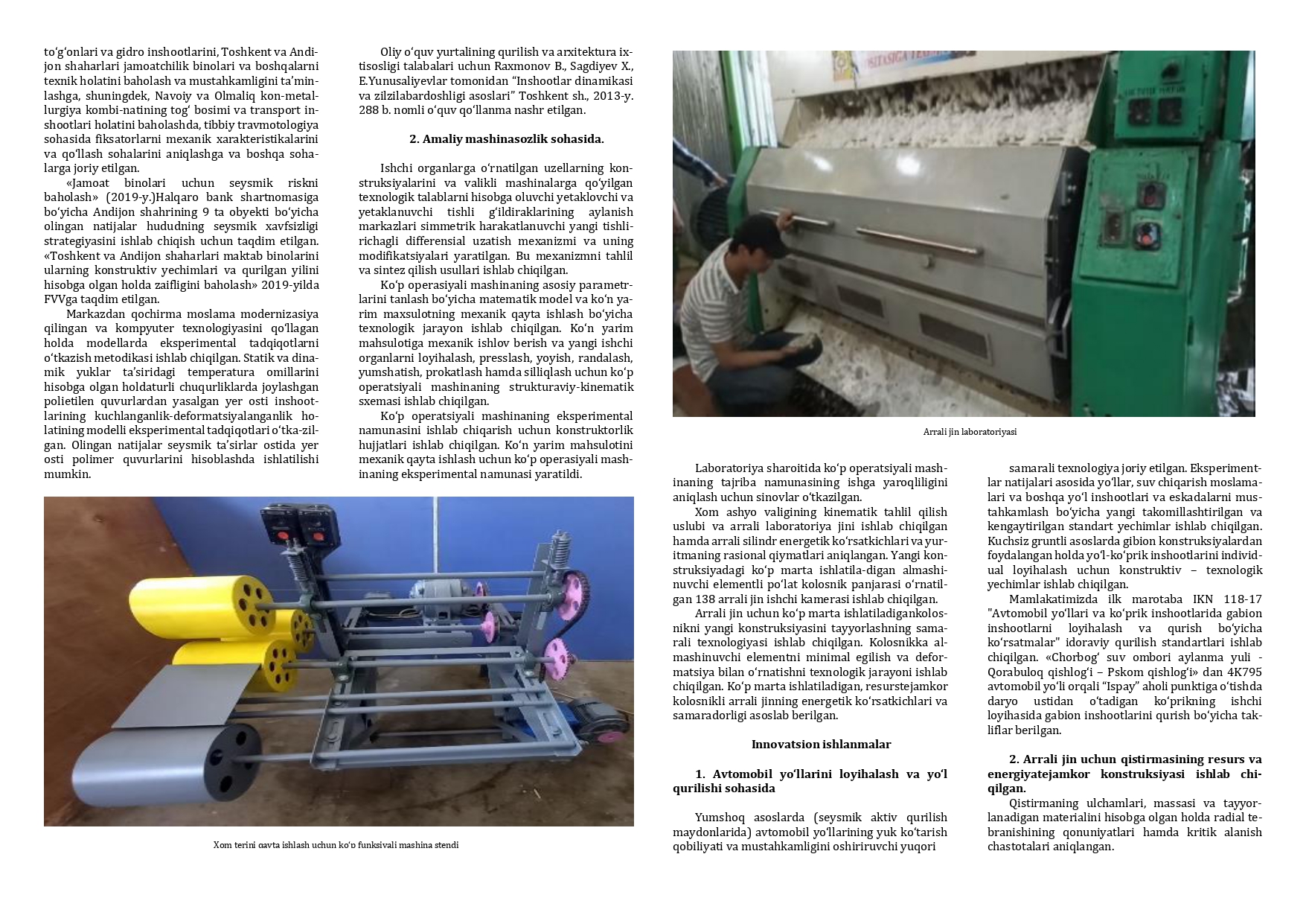 Mashinalar dinamikasi va texnologik jarayonlar muammolari laboratoriyasi
